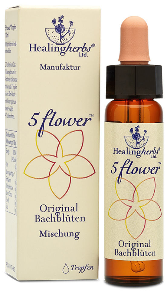 Die klassische Original Bachblüten Mischung 5 flower® – Bachblütenkombination aus den 5 Original Bachblüten Cherry Plum, Clematis, Star of Bethlehem, Impatiens und Rock Rose, die von Edward Bach ‘Rescue’ genannt wurde.