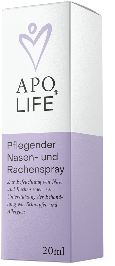 Der ApoLife Nasen- und Rachenspray dient der täglichen Nasen- und Rachenhygiene. Er hält die Nasen- und Rachenschleimhaut feucht, wodurch die Reinigungs- und Filterfunktion der Nase unterstützt wird.