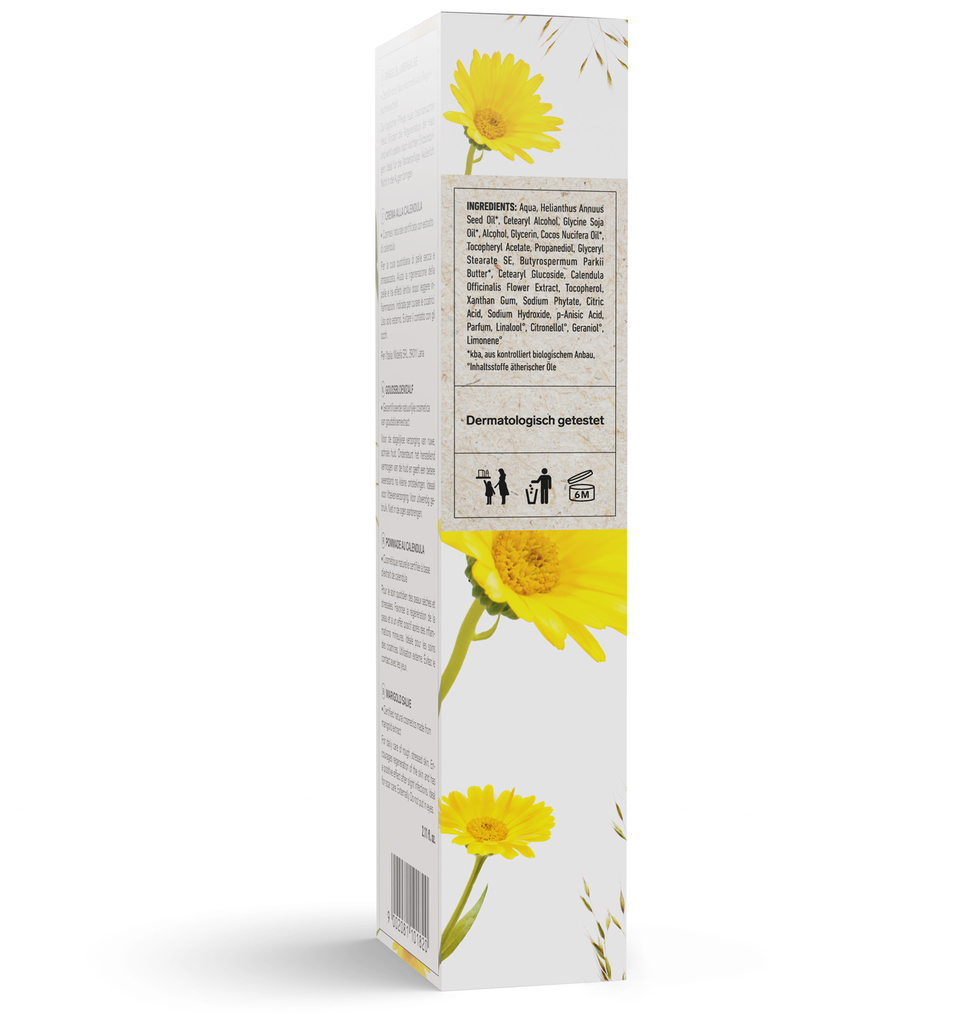 Calendulin Natur ist eine reichhaltige Pflege, die den Regenerationsprozess beanspruchter Haut unterstützt. Dabei wirkt wertvoller Ringelblumenextrakt beruhigend und lindernd.