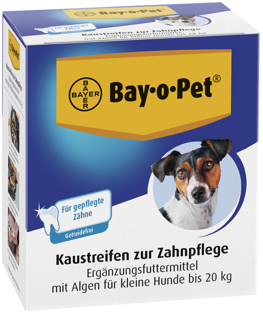 Nicht entfernter Zahnbelag kann sich zu übel riechendem Zahnstein verhärten. Parodontose und Zahnausfall sind mögliche Folgen. Regelmäßige Zahnpflege ist daher sehr wichtig. Bay-o-Pet® Kaustreifen leisten einen sinnvollen Beitrag zur täglichen Ernährung und zur Steigerung des Wohlbefindens des Hundes. Durch Bay-o-Pet® Kaustreifen werden nicht nur Zähne und Zahn-fleisch mechanisch gereinigt, sondern auch die Kaumuskulatur und das Gebiss des Hundes gestärkt. Darüber hinaus werden während des Kauens natürliche Enzyme freigesetzt, die die Zähne von gefährlichen Zahnbelägen befreien und so vor Karies und Parodontose schützen. Bay-o-Pet® Kaustreifen bestehen aus hochwertiger Rinderhaut und werden vom Hund vollständig gefressen. Die Kaustreifen sind somit ein kalorienarmer Belohnungs-Snack für Ihren Hund, der nicht belastet.