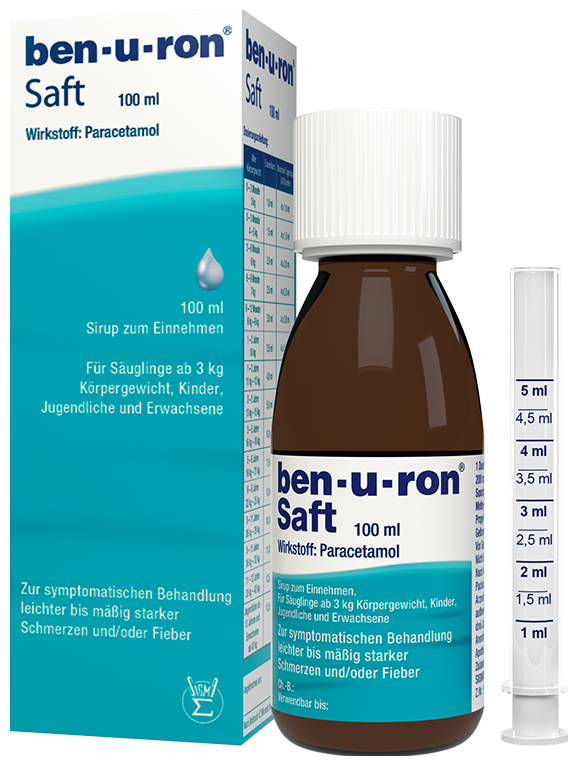 ben-u-ron Saft wird angewendet bei Säuglingen ab 3 kg Körpergewicht, Kindern, Jugendlichen und Erwachsenen: