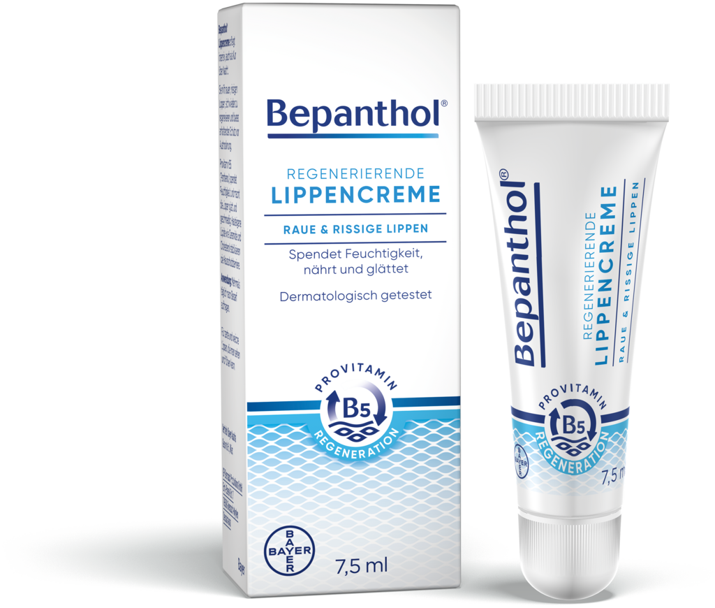 • Das in Bepanthol® Lippencreme enthaltene Panthenol unterstützt den Wiederaufbau der Hautschutzbarriere und trägt ebenfalls zur Verbesserung der Hautfeuchtigkeit bei.
