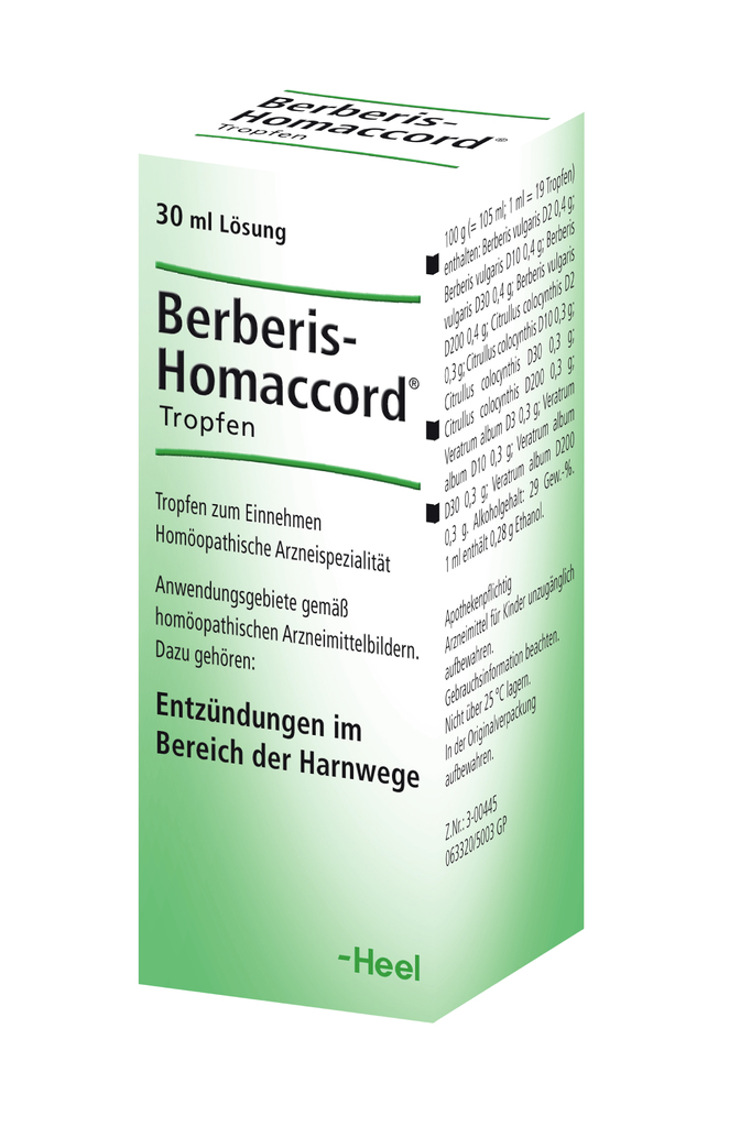 Berberis-Homaccord®-Tropfen unterstützen leichte Entzündungen im Bereich der Harnwege mit Beschwerden wie z.B. Brennen beim Harnlassen und/oder häufiges Harnlassen.