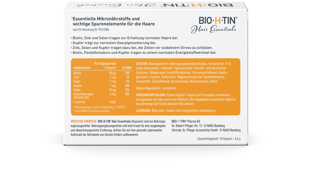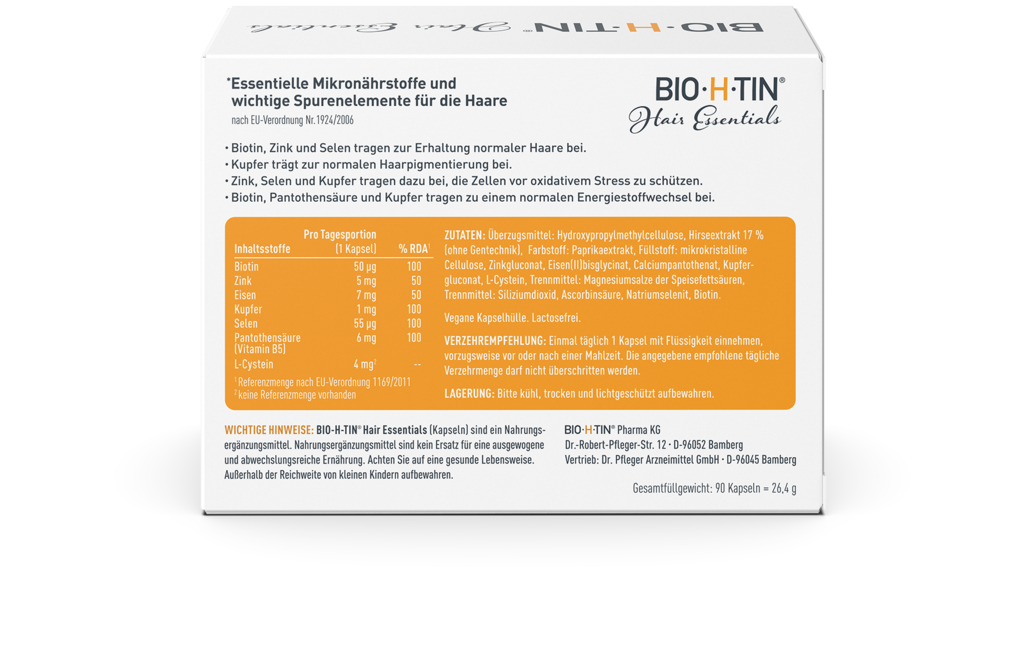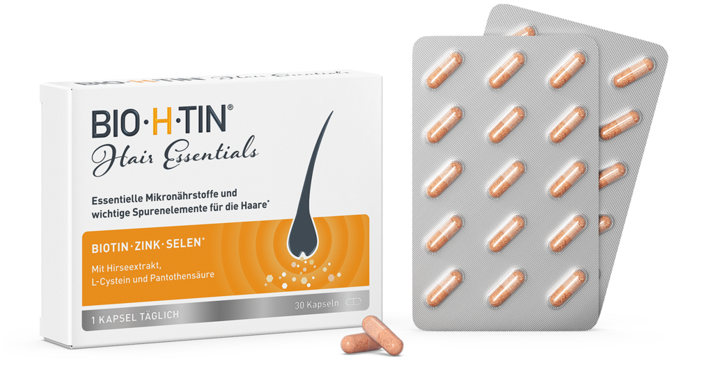 - BIO-H-TIN Hair Essentials unterstützt die Grundversorgung der Haarwurzeln und fördert das gesunde Haarwachstum von innen heraus