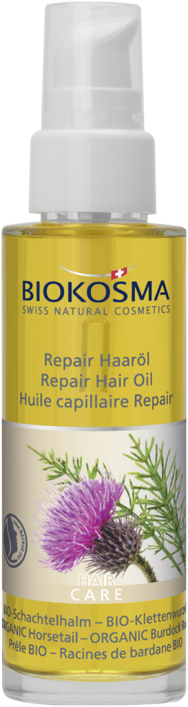 Das Naturkosmetik Haaröl von BIOKOSMA mit BIO-Schachtelhalmextrakt aus der Schweiz und BIO-Klettenwurzelextrakt stärkt empfindliche, irritierte Kopfhaut und verleiht trockenem Haar fühlbare Geschmeidigkeit und natürlichen Glanz ohne es zu beschweren. Die BIOKOSMA Haaröl Repair-Formel mit feuchtigkeitsspendendem BIO-Arganöl hilft spröde Haare und strapazierte Haarspitzen zu reparieren, hilft die natürliche Haarstruktur zu optimieren, vor Haarbruch zu schützen und sorgt für eine bessere Kämmbarkeit der Haare. Die Kopfhaut fühlt sich beruhigt und gepflegt an. Die Pflege-Produkt Inhaltsstoffe sind silikonfrei.