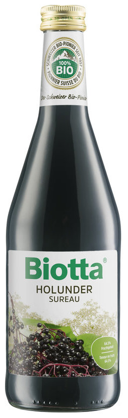 Bio-Holunderbeersaft*, Teeauszug aus Bio-Holunderblüten*, Bio-Agavendicksaft*