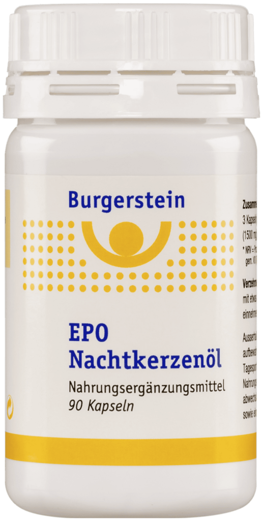 die in Burgerstein EPO Nachtkerzenöl enthaltenen ungesättigten Fettsäuren (z.B. Gamma-Linolensäure) werden zu Prostaglandinen umgewandelt.
