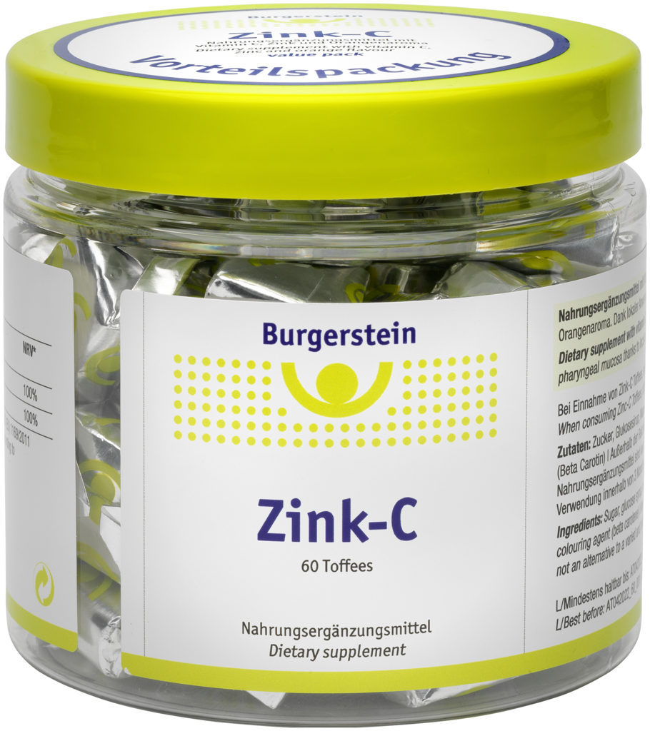 Zink und Vitamin C – eine über Jahren bewährte Kombination. Gerade in den kalten Wintermonaten ist unser Immunsystem auf Hilfe angewiesen. Trockene Heizungsluft, viele Personen auf engem Raum, gut gibt es die leckeren, nach Orange schmeckenden Zink-C Toffees. Sie unterstützen das Immunsystem optimal und tragen dazu bei die Zellen vor oxidativem Stress zu schützen.