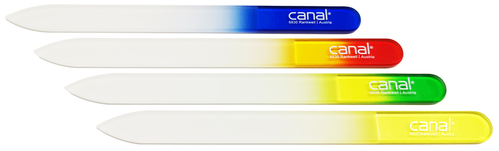 Die canal Glasfeile ist eine ganz besonderes Instrument unter den Nagelfeilen. Beim Feilen wird der Nagel und die Nagelkanten versiegelt - splitternde Nägel ade! Dank der glatten Nagelkanten können das Sportshirt oder die Lieblingsstrumpfhose angezogen werden ohne Laufmaschen zu ziehen. Die abgerundete Spitze dient zum Reinigen unter dem Nagel. Nach dem Feilen kann die Glasfeile ganz einfach unter Wasser gereinigt werden. Die Glasfeile behält ein Leben lang die Schleifkraft.