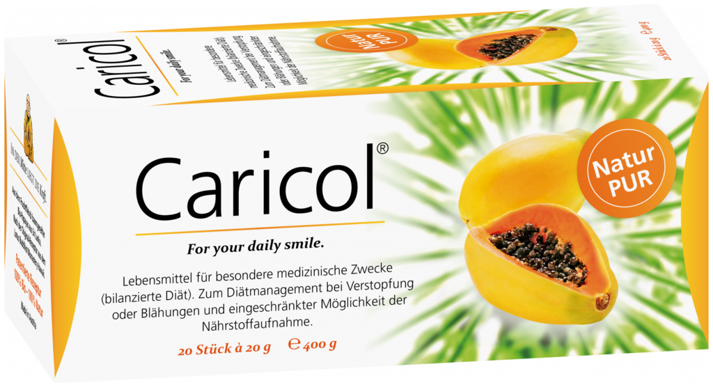 Caricol® ist ein reines Naturprodukt aus baumgereiften Papayafrüchten. Das patentierte Herstellungsverfahren von Caricol® vervielfacht die verdauungsfördernden Eigenschaften der Papaya. So entsteht ein natürliches Konzentrat zur Regulierung und Aktivierung der Verdauung.
