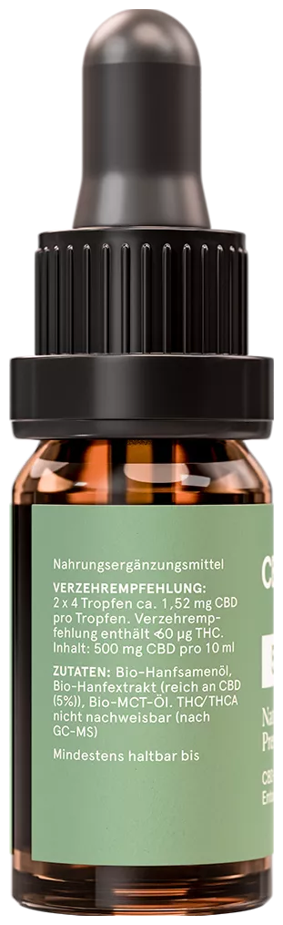 - 500 mg Cannabidiol (decarboxyliert) pro 10 ml