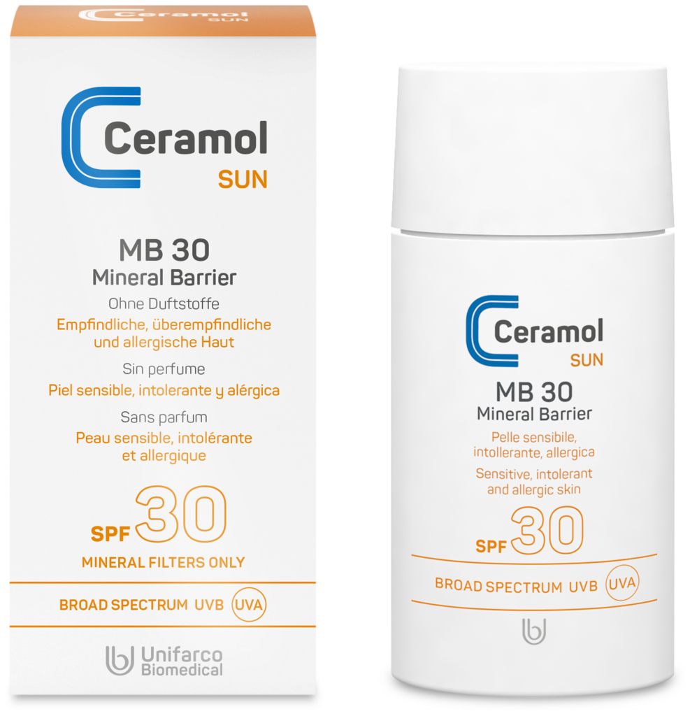 - MB 30 enthält mineralische UV-Filter (LSF 30), die auch von der besonders empfindlichen, zu Atopie und/oder Allergien neigenden Haut gut vertragen werden. Es ist frei von Duftstoffen und sorgt für den Aufbau der Hautbarriere.