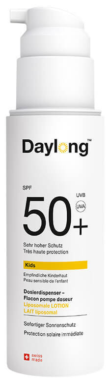 Daylong™ Kids 50 Lotion ist eine liposomale Sonnenschutzlotion, speziell geeignet für Kinder. Pflegestoffe wie Glycerin und Dexpanthenol geben der zarten Kinderhaut zusätzlich Feuchtigkeit. Der praktische Dosierspender hilft, die empfohlene Menge (2 mg/cm²) anzuwenden und den ausgewiesenen Sonnenschutzfaktor zu erreichen. Daylong™ Kids 50 Lotion ist extra wasserfest und bietet dank seinem umfassenden UVA- und UVB-Schutz zuverlässigen Schutz für die Kinderhaut vor der Sonne.