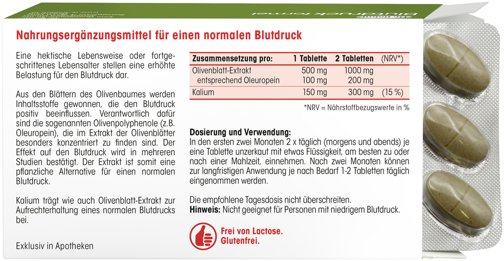 - Mit hochdosiertem Olivenblattextrakt plus Kalium