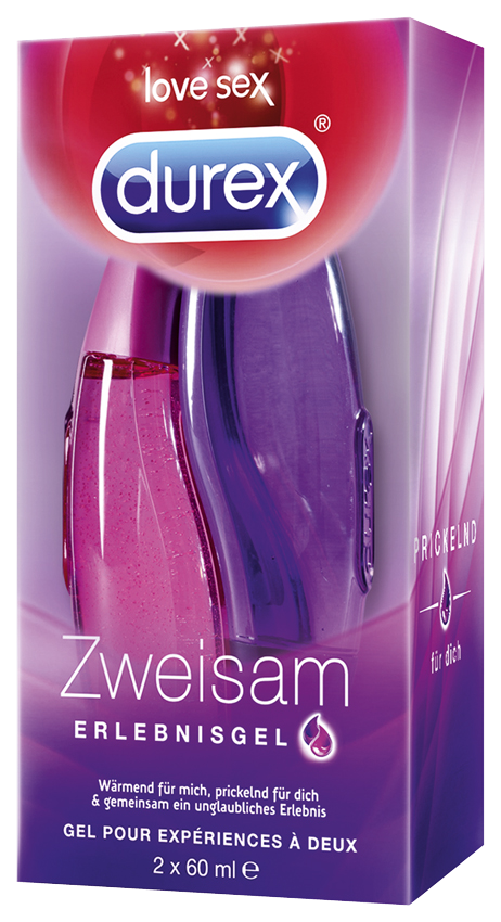 Durex Zweisam verleiht Eurem Sexleben ein unglaubliches Erlebnis. Zwei sinnlich angenehme Erlebnisgele, die für den gemeinsamen Spaß für Paare entwickelt wurden.