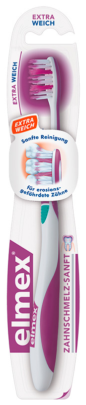 Die elmex® ZAHSCHMELZSANFT Zahnbürste wurde gemeinsam mit Experten entwickelt. Sie ist sanft zum Zahnschmelz und reinigt dennoch gründlich. Optimal abgerundete Reinigungsborsten und extra sanfte Filamente mit mikrofeinen Enden ergänzen einander. Der Bürstenkopf ist weich ummantelt, der Bürstengriff ergonomisch geformt. Weiche zugespitzte Filamente sorgen für eine Reinigung bis in die Zahnzwischenräume. Sie stellt eine optimale Ergänzung des ZAHNSCHMELZSCHUTZ PROFESSIONAL-Systems dar, das bislang aus Zahnspülung und Zahnpasta bestand.