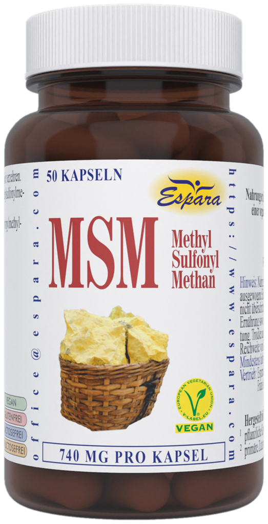 Nahrungsergänzungsmittel mit Methylsulfonylmethan (abgekürzt MSM), einer organischen Schwefelverbindung.