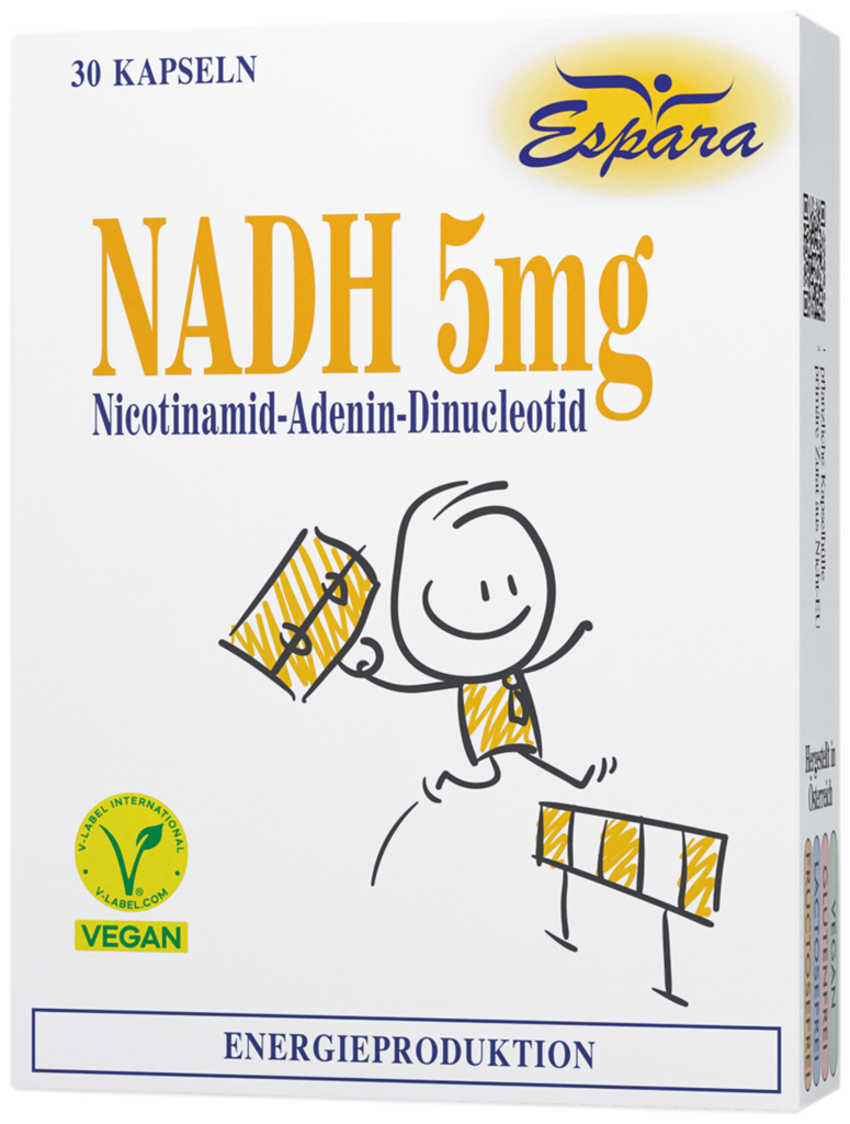Nahrungsergänzungsmittel mit NADH (Nicotinamid-Adenin-Dinucleotid, Co-Enzym-1), einem Wirkstoff, der für die Energieproduktion innerhalb der Körperzellen von essentieller Bedeutung ist. Die pflanzliche Kapselhülle DRCAPSTM sorgt für eine verzögerte Freisetzung und schützt so das NADH vor der Magensäure.