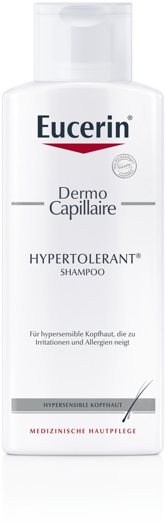 Dieses extra milde Shampoo wurde speziell für Menschen mit einer problematischen und hypersensiblen Kopfhaut entwickelt. Eucerin DermoCapillaire Hypertolerant Shampoo reinigt sanft und beruhigt die irritierte Kopfhaut.