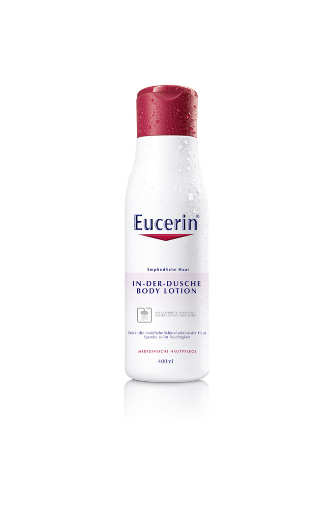 Eucerin In-der-Dusche Body Lotion ist parabenfrei und enthält weder Parfum noch Farbstoffe.