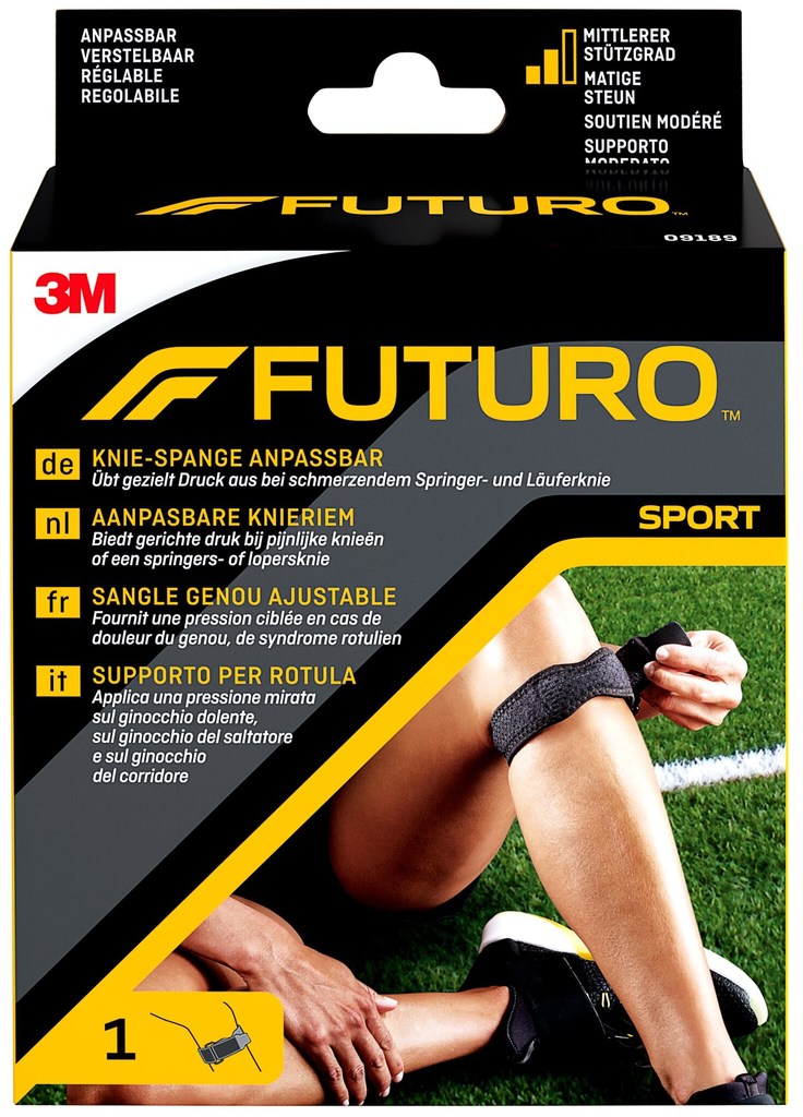 Für das Läuferknie gibt es professionelle Unterstützung durch die FUTURO™ Knie-Spange anpassbar. Mit einem verstärkten Gel-Polster übt die Knie-Spange einen entlastenden, anpassbaren Druck auf die verletzte Sehne aus, sodass Sie wieder auf das Laufband oder die Strecke zurückkehren können. Mit der FUTURO™ Knie-Spange anpassbar sind Sie schnell wieder am Start.
