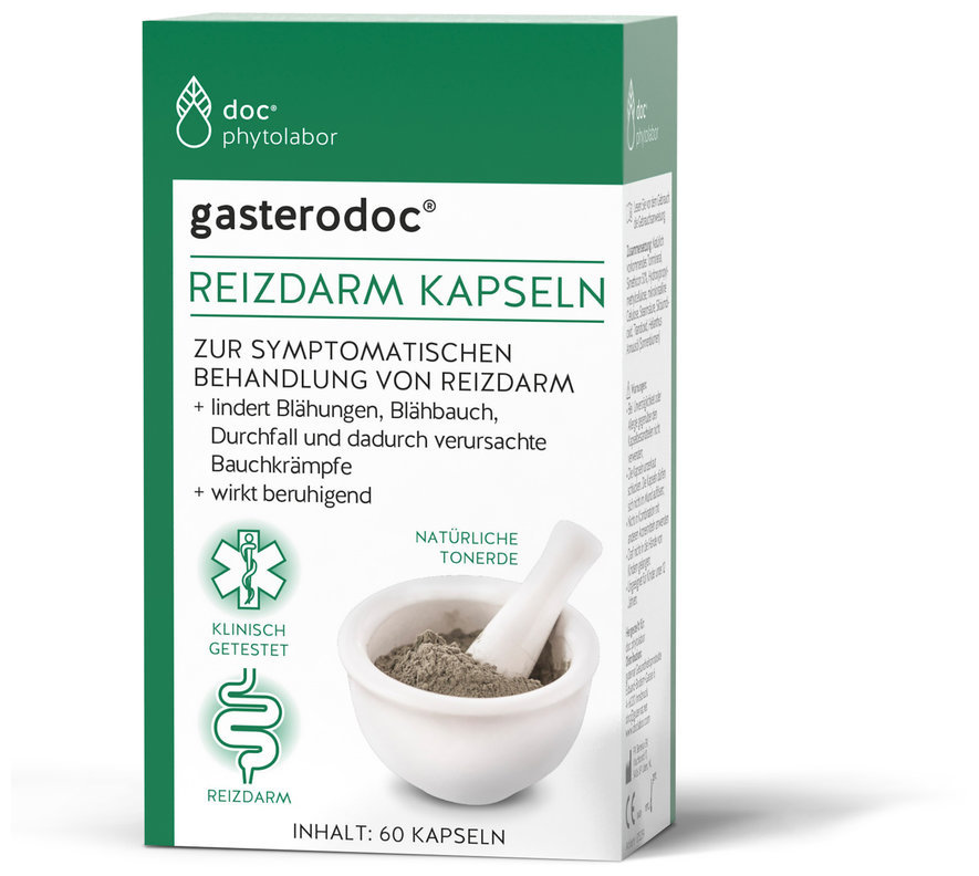 Medizinprodukt zur wirksamen Behandlung von Reizdarm. Schnelle Linderung schmerzhhafter Reizdarm-Symptome wie Blähungen, Blähbauch, Durchfall und dadurch verursachte Bauchkrämpfe