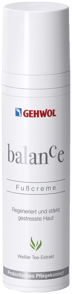 Ein probiotisches Pflegekonzept bildet die Basis von GEHWOL balance Fußcreme für Haut, die täglich durch äußere Einflüsse gestresst ist. Der Hautbarriere-Stärker: Der probiotische Wirkstoff BIOTILYS® mit Lactobacillus pentosus fördert die natürliche Vermehrung gesunder Bakterien der Hautflora und bringt diese wieder in balance. Er regeneriert und stärkt die natürliche Hautbarriere und schützt die Haut. Der Feuchtigkeits-Spender: Weißer Tee-Extrakt versorgt die Haut mit Feuchtigkeit und schützt sie vor Feuchtigkeitsverlust. Der Pflege-Booster: Sesamöl pflegt die Haut, macht sie spürbar geschmeidiger und glatter. Die balance Pflege lässt sich gut verteilen, zieht schnell ein und fettet nicht. Sie ist vegan, PEG-frei sowie ohne Parabene und Silikonöl.