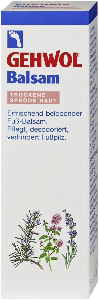 Kühlendes Menthol und natürliche Öle aus Rosmarin und Lavendel erfrischen und beleben. Fußbrennen und Ermüdungserscheinungen verschwinden sofort. Müde, wehe Füße leben auf. Bewährte antimikrobelle Stoffe verhindern Fußgeruch nachhaltig, bieten einen wirksamen Schutz vor Fußpilz und halten die Füße hygienisch frisch. GEHWOL Balsam für trockene, spröde Haut ist reich an hautfreundlichen Pflegestoffen wie Lanolin und Avocadoöl. Raue und rissige Haut wird wieder glatt, geschmeidig und widerstandsfähig. Aloe Vera bindet zusätzlich Hautfeuchtigkeit. GEHWOL Balsam für trockene, spröde Haut hinterlässt das angenehme Gefühl einer gut gepflegten Haut.