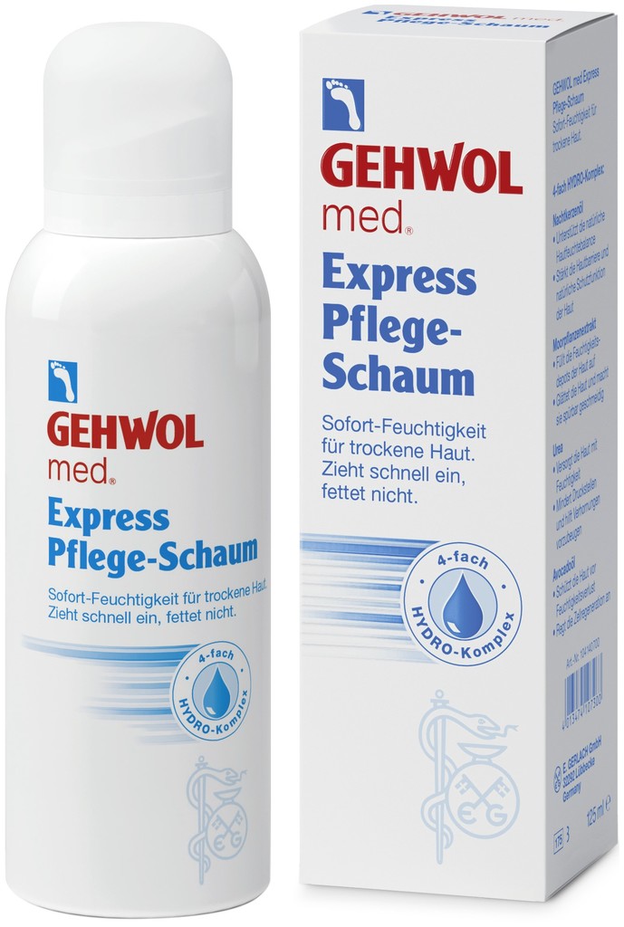 Der GEHWOL med Express Pflege-Schaum versorgt die Haut mit Feuchtigkeit dank des 4-fach HYDRO-Komplexes. Das Nachtkerzenöl unterstützt die natürliche Hautfeuchte-Balance. Es stärkt die Hautbarriere und somit die natürliche Schutzfunktion der Haut. Der Moorpflanzenextrakt füllt die Feuchtigkeitsdepots der Haut auf und macht sie geschmeidig. Urea versorgt die Haut mit Feuchtigkeit, mindert zusätzlich die Druckstellen und hilft, Verhornungen vorzubeugen. Das Avocadoöl rundet den 4-fach HYDRO-Komplex ab und schützt die Haut vor Feuchtigkeitsverlust. Zusätzlich regt es die Zellregeneration an. Mit einer kleinen Menge des ergiebigen Schaums sind die Füße täglich, morgens und abends, in Express-Geschwindigkeit gepflegt. GEHWOL med Express Pflege-Schaum zieht schnell ein und fettet nicht. Für spürbar geschmeidige, gepflegte Füße und ein angenehmes Hautgefühl. Auf eine Parfümierung sowie auf den Einsatz von Parabenen, Silikonen und PEG-Emulgatoren wurde bei der Formulierung verzichtet.