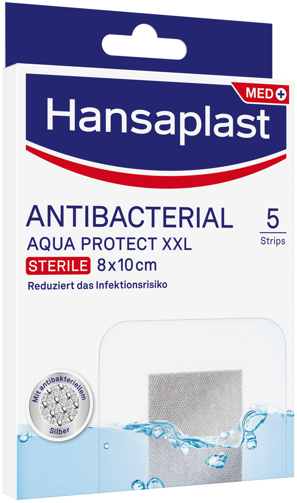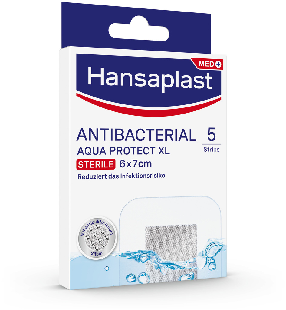 Die sterilen Wundverbände Hansaplast Antibakteriell Aqua Protect XL und XXL sind wasserdichte sterile Pflaster zum Schutz mittelgroßer und größerer Wunden, wie sie im Alltag entstehen können. Sie sind auch für die Wundversorgung nach kleineren operativen Eingriffen geeignet.