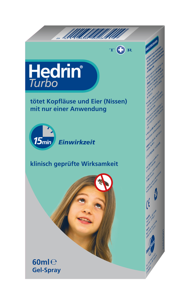 Hedrin® Turbo Gel-Spray ist ein flüssiges Gel im bequemen Spray-Format. Die einfache Handhabung des Ventils hilft, das flüssige Gel auf dem Haar zu verteilen und schwierige Stellen zu erreichen. Hedrin® Turbo Gel-Spray ist sehr wirksam gegen Kopfläuse und deren Eier. Seine Wirkung beruht auf einem physikalischen Vorgang, bei dem die Laus umhüllt und getötet wird. Es enthält einen Inhaltsstoff mit der Bezeichnung Penetrol®, der dabei hilft, dass das Produkt in die Lauseier eindringen kann, um diese abzutöten. Hedrin® Turbo Gel-Spray wirkt schon bei nur einmaliger Anwendung. Sie sollten allerdings eine Woche nach der Anwendung prüfen, ob alle Kopfläuse und deren Eier abgetötet wurden. Sollten Sie noch Kopfläuse entdecken, wiederholen Sie bitte die Behandlung. Das Gel kann so oft wie notwendig angewendet werden ohne dass die Läuse eine Widerstandsfähigkeit (Resistenz) entwickeln.