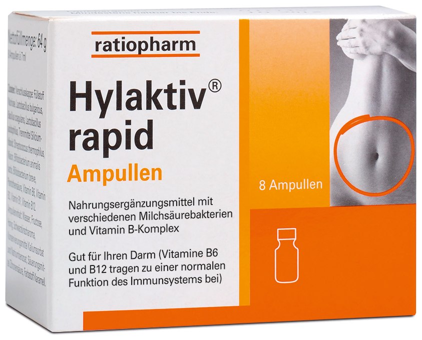 Verzehrsempfehlung: 1-2 x täglich eine Trinkampulle Hylaktiv rapid einnehmen.