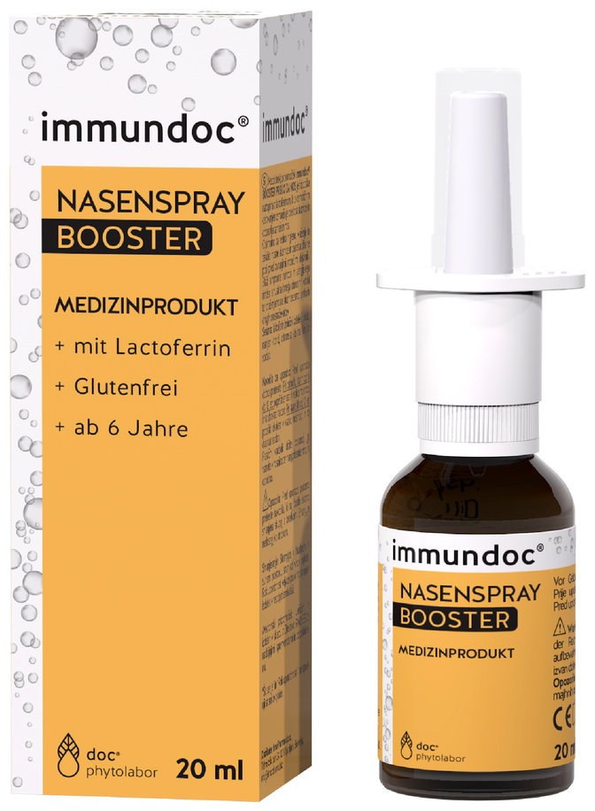 Das Medizinprodukt immundoc® Nasenspray BOOSTER ist eine Salzlösung mit Lactoferrin mit abschwellender Wirkung durch osmotischen Effekt. Optimal für Hygiene, Befeuchtung und Schutz der Nasenschleimhaut und der oberen Atemwege vor äußeren Angriffen, lindert bei Erkältung und allergischer Rhinitis, Symptomen von Sinusitis, Staub und Schadstoffen.