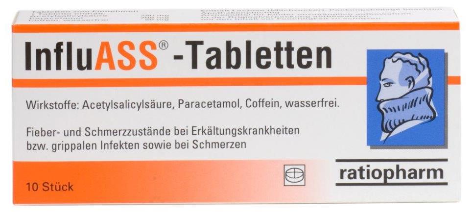 Die Wirkstoffe Acetylsalicylsäure (ASS) und Paracetamol in InfluASS® - Tabletten haben eine rasch einsetzende schmerzstillende, fiebersenkende und entzündungshemmende Wirkung.