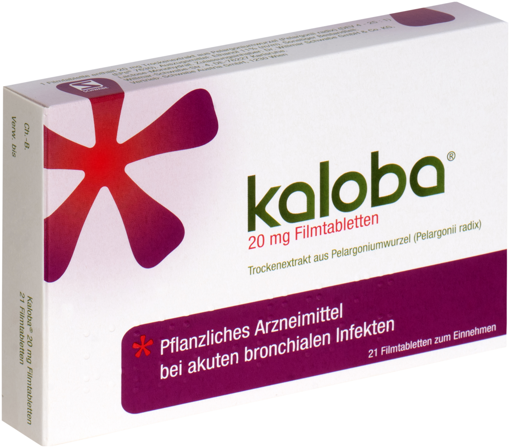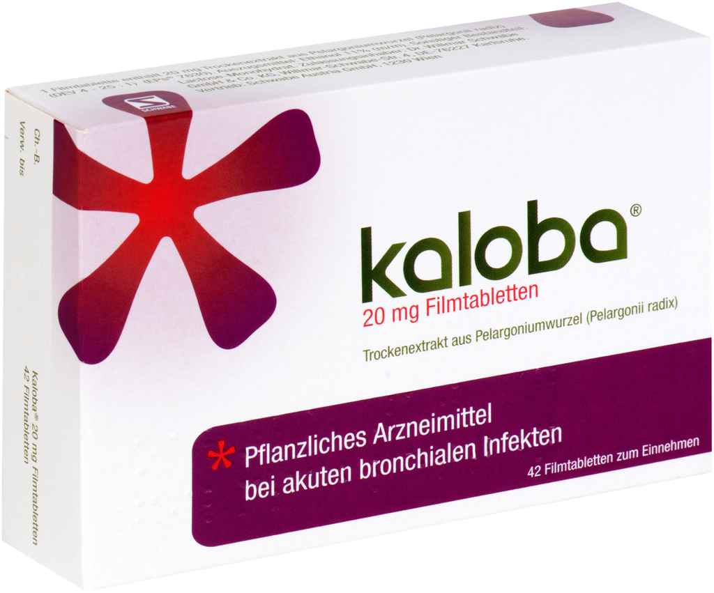 Kaloba 20mg ist ein pflanzliches Arzneimittel aus der Pelargoniumwurzel (Pelargonii radix) (KaplandPelargonie) zur symptomatischen Behandlung von akuten bronchialen Infekten mit Husten und Schleimproduktion.