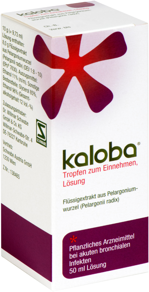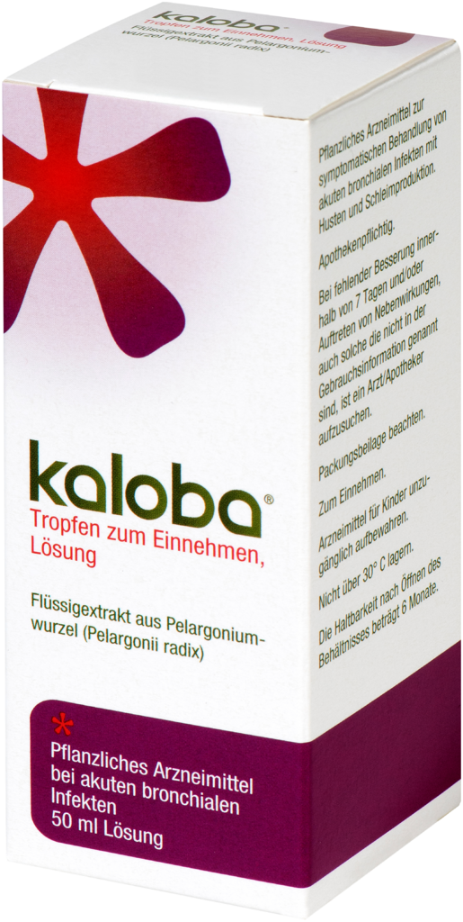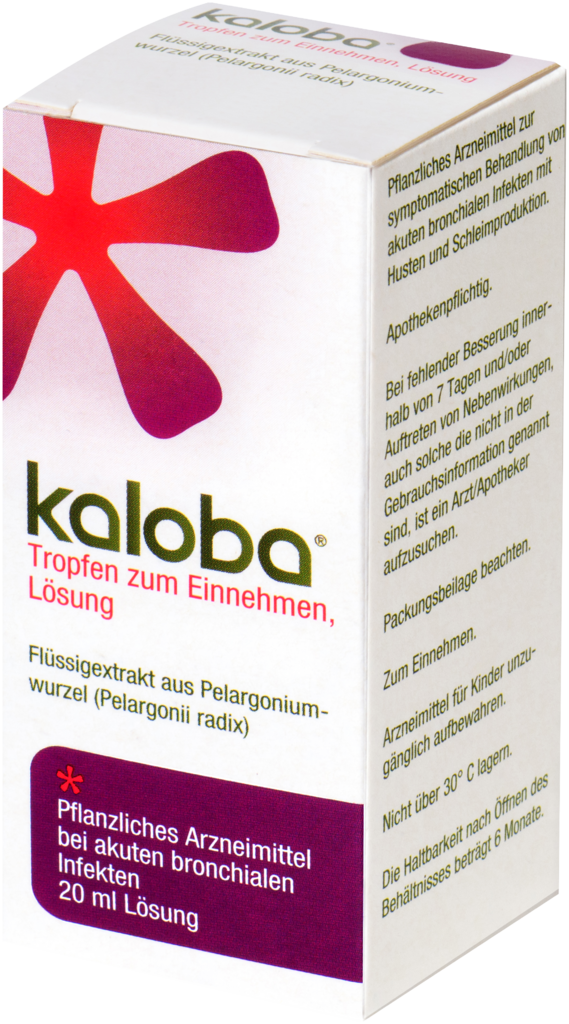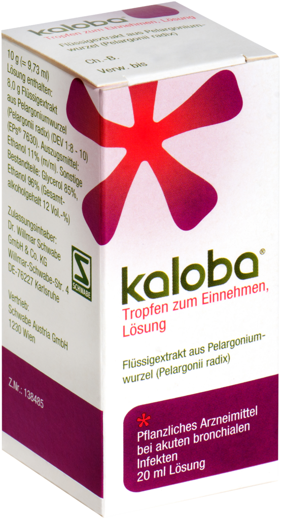 Kaloba ist ein pflanzliches Arzneimittel aus der Pelargoniumwurzel (Pelargonii radix) (KaplandPelargonie) zur symptomatischen Behandlung von akuten bronchialen Infekten mit Husten und Schleimproduktion.
