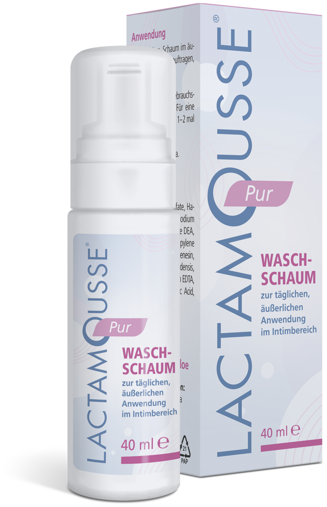 LACTAMOUSSE Pur Waschschaum ist speziell für die tägliche Pflege des Intimbereichs entwickelt. Er bietet eine sanfte Reinigung und Pflege, ist frei von Alkaliseife, Parfum, Farbstoffen und Treibgas. Der Schaum ist gebrauchsfertig und eignet sich besonders gut für empfindliche Haut.