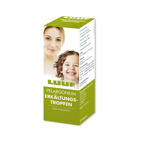 LUUF® Pelargonium Erkältungs-Tropfen sind ein rein pflanzliches traditionelles Arzneimittel und wirken schnell und effektiv gegen Erkältungen. Die Tropfen enthalten einen  Auszug aus den Wurzeln der Kapland-Pelargonie (Pelargonium sidoides), einer im Süden Afrikas beheimateten Heilpflanze. Sie lindert auf natürlichem Weg Erkältungssymptome und ist gut verträglich.
