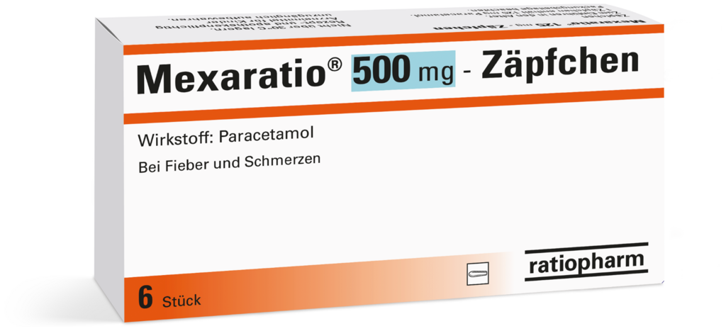 Mexaratio 500 mg-Zäpfchen enthalten den schmerzstillenden und fiebersenkenden Wirkstoff Paracetamol.