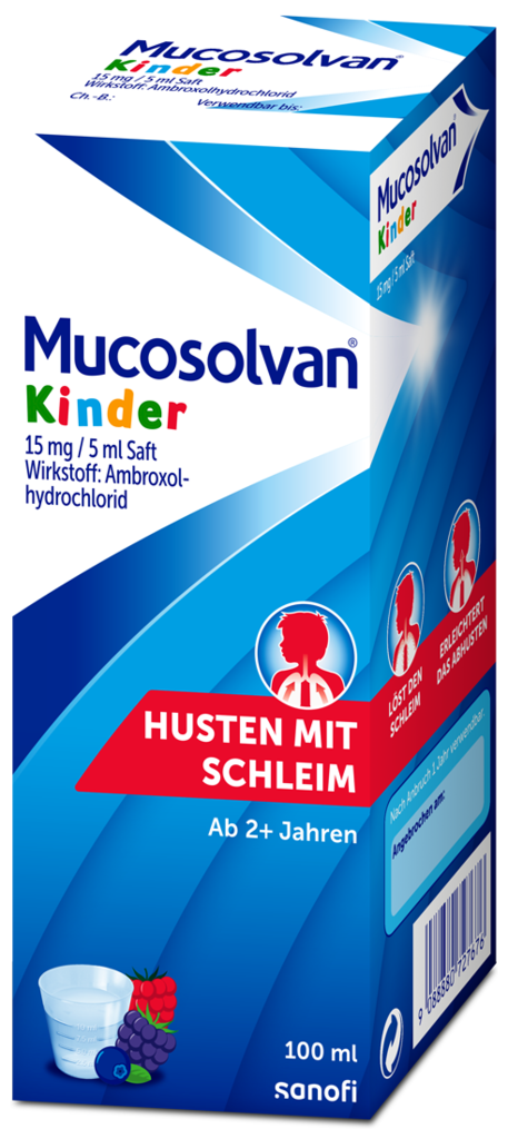 Ambroxolhydrochlorid, der Wirkstoff von Mucosolvan 15 mg / 5 ml - Saft für Kinder, löst gestautes und zäh haftendes Sekret von der Bronchialwand und erleichtert das Abhusten.