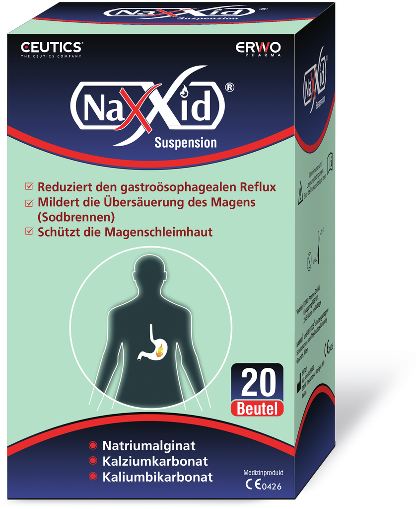 Naxxid® Suspension enthalten eine Mischung verschiedener sich ergänzender Substanzen, die in der Speiseröhre und im Magen gemeinsam wirken.