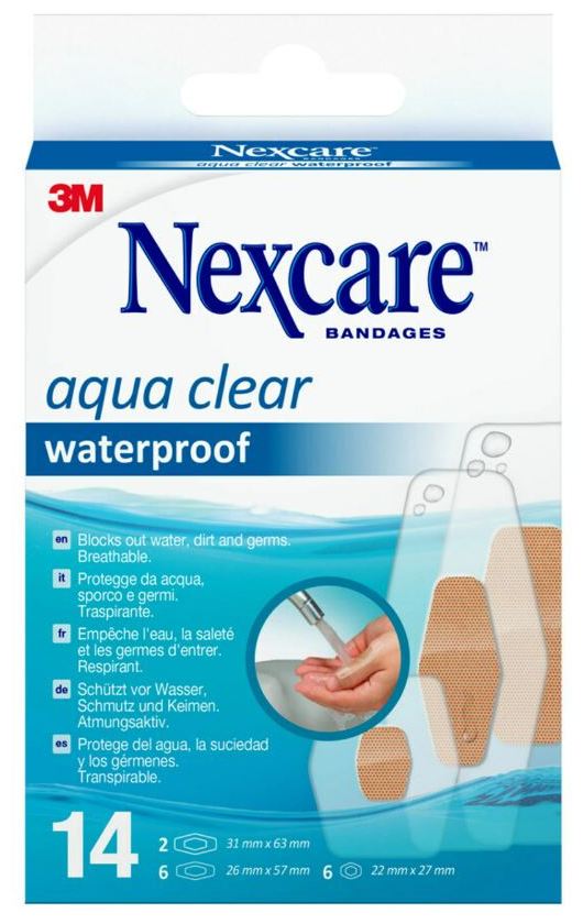Auf optimalen Halt auch bei Nässe und Schutz vor Wasser ausgelegt schützen Nexcare™ Aqua Clear Waterproof kleinere Wunden wie Kratzer, Schnitte und Blasen bei Aktivitäten in der freien Natur. Ultradünne, atmungsaktive Konstruktion mit Rundumabdichtung, die vor Wasser, Schmutz und Keimen schützt und so Infektionen vorbeugt. Diese aus einem dünnen, transparenten Trägermaterial und einer nicht haftenden Wundauflage gefertigten Pflaster haften bis zu 12 Stunden und bieten ganztägigen Tragekomfort. Nexcare™ Aqua Clear Waterproof Pflaster verdienen einen Platz in jedem Verbandkasten. Sie bieten eine zuverlässige Wundversorgung, die Sie in Gang hält.