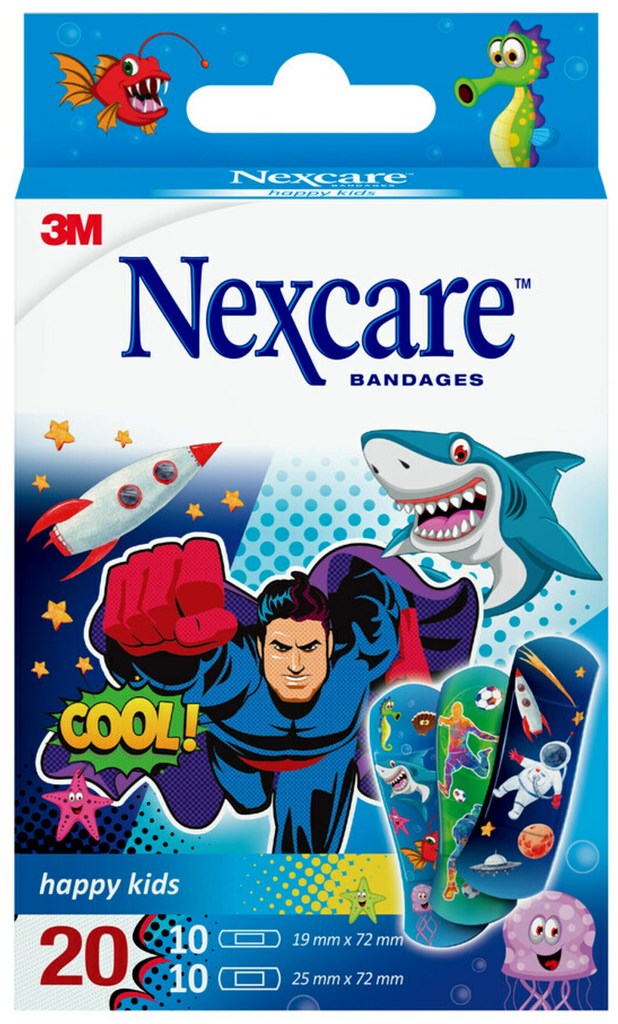 Nexcare™ Kinderpflaster Happy Kids Cool sind unsere lustigen, dünnen Pflaster für Schnitte, Kratzer und Schürfwunden Ihrer Kinder. Das Material passt sich der Hautoberfläche so gut an, dass es kaum zu spüren ist.