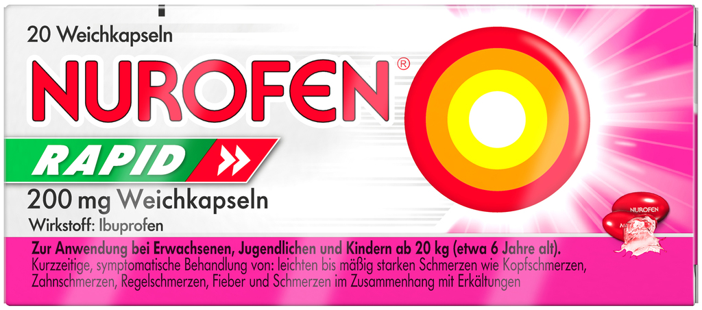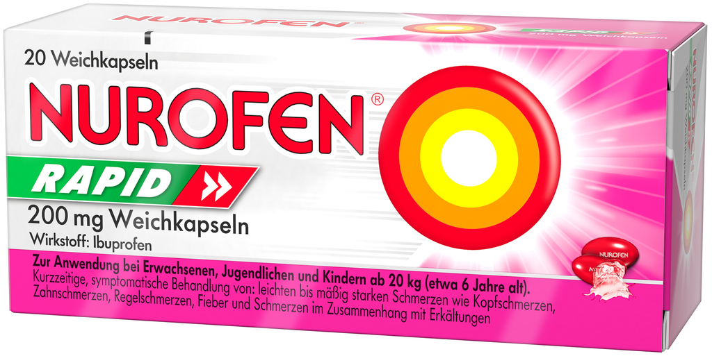 Ibuprofen gehört zur Gruppe der sogenannten nicht-steroidalen entzündungshemmenden Arzneimittel (NSAR, nicht-steroidale Antirheumatika). Diese Arzneimittel wirken, indem Sie die Reaktionen des Körpers auf Schmerzen und Fieber ändern. Nurofen rapid zerfällt rasch im Körper, und der freigesetzte Wirkstoff aus der Kapsel wird so leicht aufgenommen und gelangt schnell zur schmerzenden Stelle.
