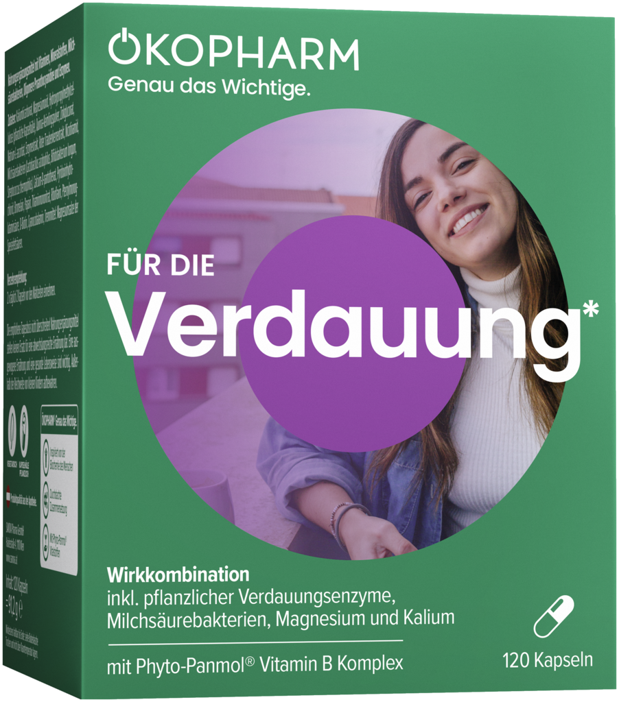 Die optimal abgestimmte Rezeptur in den Verdauung* Kapseln von ÖKOPHARM® unterstützt mit ausgewählten Mikronährstoffen die Verdauungs- und Darmaktivität.