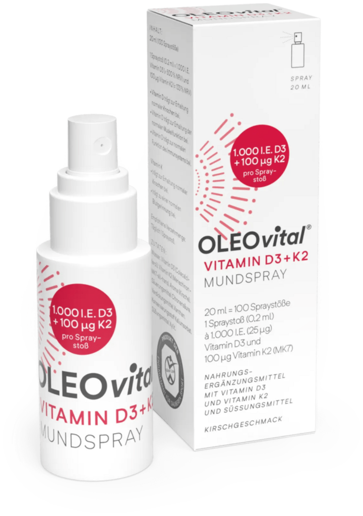 Erleben Sie die innovativen OLEOvital VITAMIN D3+K2 Mundsprays – präzise Dosierung, schnelle Aufnahme. Effektive Lösung gegen Vitamin-D-Mangel. Vorbeugen und behandeln leicht gemacht.