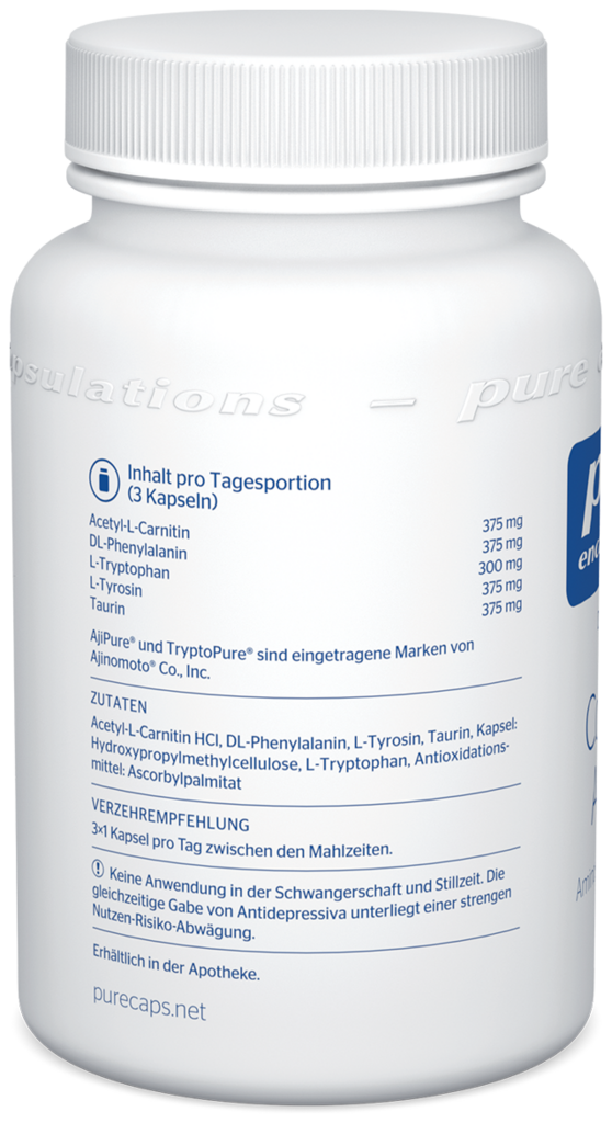 Acetyl-L-Carnitin HCl, DL-Phenylalanin, L-Tyrosin, Taurin, Kapsel: Hydroxypropylmethylcellulose, L-Tryptophan, Antioxidationsmittel: Ascorbylpalmitat