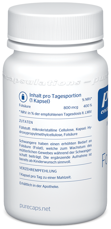 - unterstützt dabei, eine reduzierte Folsäure-Zufuhr über die Ernährung auszugleichen und einen erhöhten Bedarf zu decken