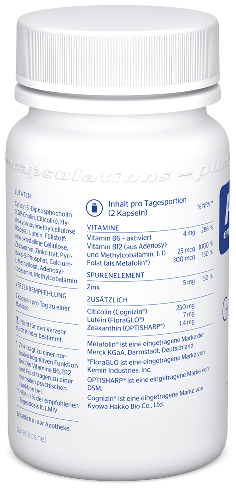 Fokus und Konzentration sind die Voraussetzung für effizientes Arbeiten. Durch die enthaltenen B-Vitamine und Zink hat Gedächtnis Formel eine unterstützende Wirkung auf deine Gedächtnisfunktion und Konzentrationsfähigkeit. Citicolin setzt sich zusammen aus dem Nukleosid Cytidin und Cholin, die miteinander verbunden sind.