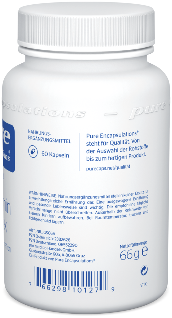 Wie alle Produkte von Pure Encapsulations® wird auch Glucosamin Complex nach strengen internationalen Standards produziert. Um die hohe Produktqualität langfristig und nachhaltig sicherzustellen, wird der gesamte Prozess von der Herstellung bis hin zur Lagerung laufend geprüft. Dabei werden interne und externe Qualitätskontrollen in jedem einzelnen Schritt durchgeführt.